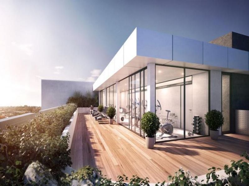 Gym and barbeque area on 8th storey with stunning views and large terrace