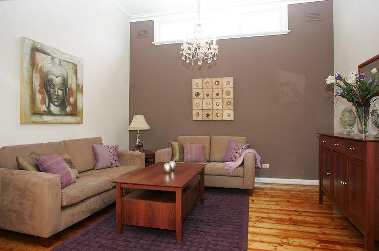 Generous living room with striking feature wall