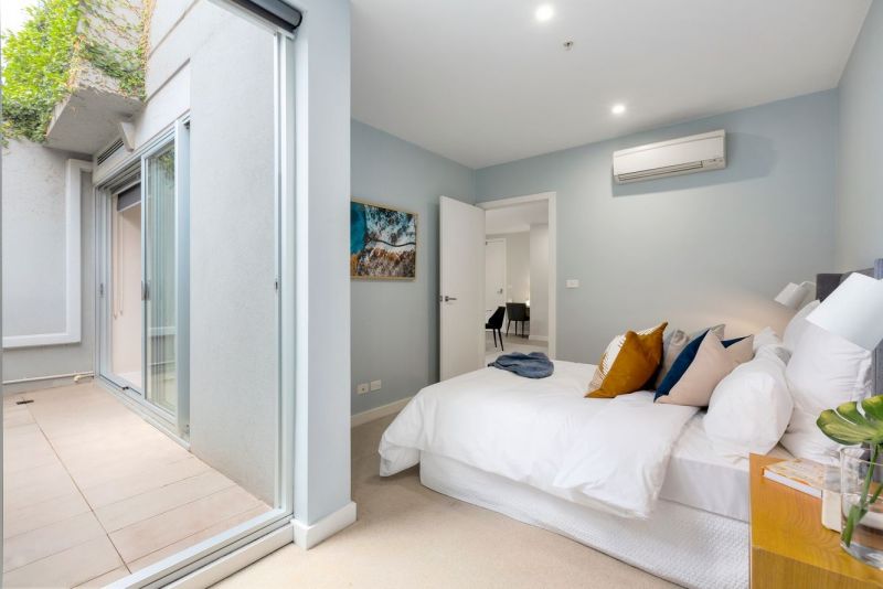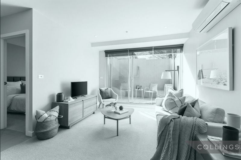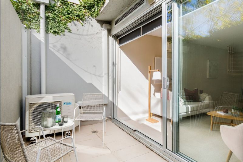 Comprising of a lightfilled, openplan central living and meals zone with access to a stunning courtyard, designer stone kitchen with stainless steel appliances, spacious bedroom with a builtin robe which has direct access out to the phenomenal northern entertainer's courtyard fitted with split system heating and cooling incl. bedroom, secure intercom, and secure undercover car space.